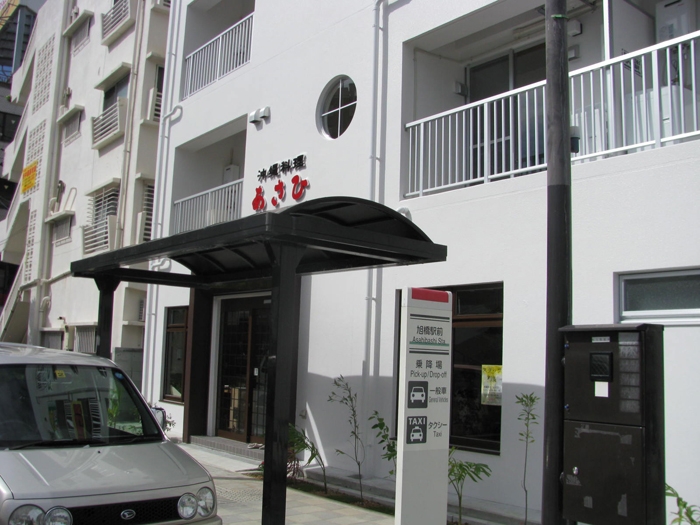 那覇空港から北谷向け(北部向け)に約15分北上し、明治橋を越えてすぐの「那覇バスターミナル」「モノレール旭橋駅」に隣接している、白いビルがウイクリー・マンスリーゲストハウスあさひ21となります。